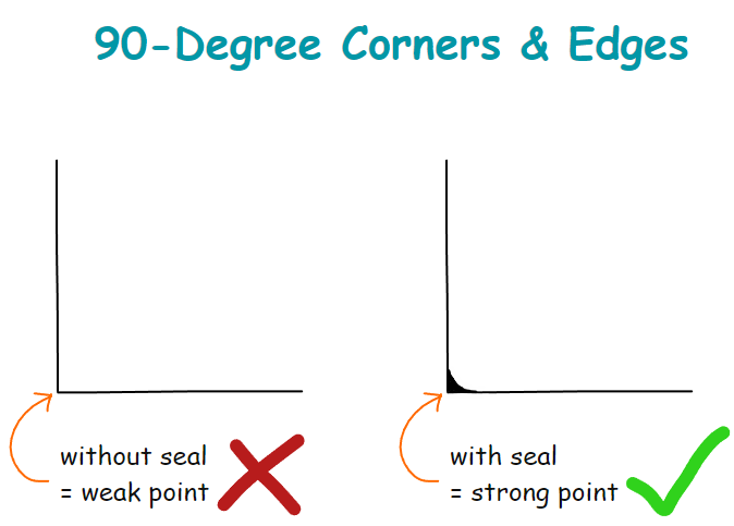 For an even stronger application, apply it about 1″ (2.5 cm) down the outside wall of the metal wall. If there is any seam or gap between the trim on the outside and the exterior walls, seal it with a thin bead of epoxy putty.