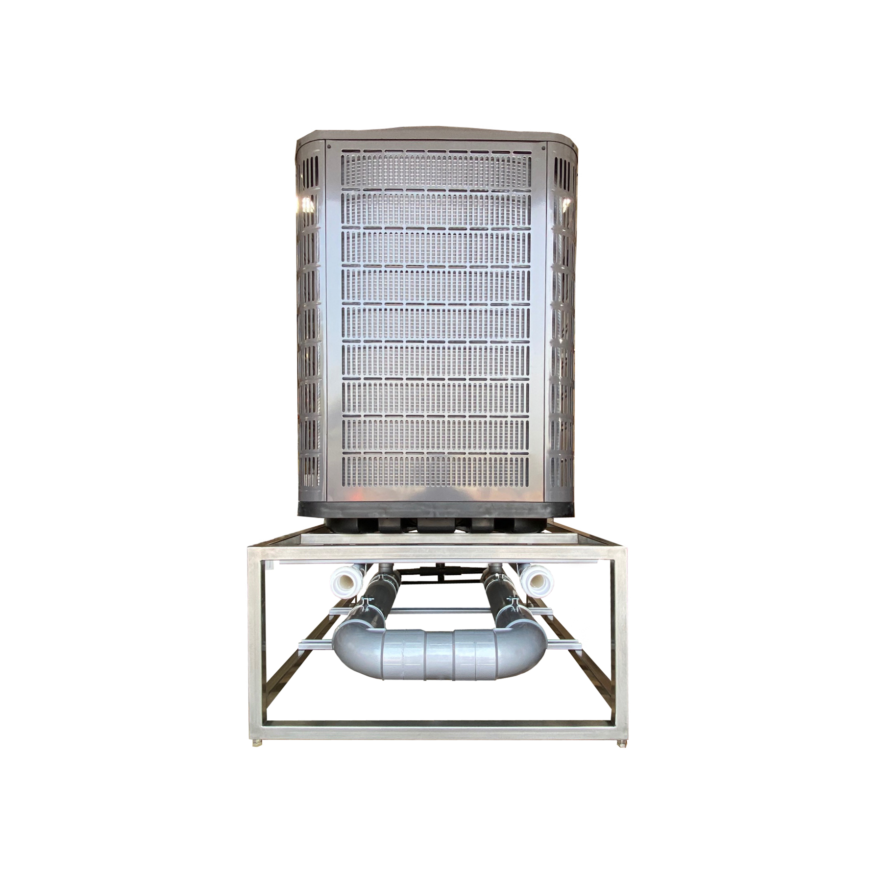Our Commercial Water Chiller comes on a stainless steel frame. The units come with a built in flow switch to disable the chiller in the event of a pump failure. The units also come with a titanium heat exchanger which is recommended for use in cold plunges. Copper heat exchangers can cause toxic levels of copper to build up in water over time, and are not recommended for cold plunges. Titanium is cold plunge safe!